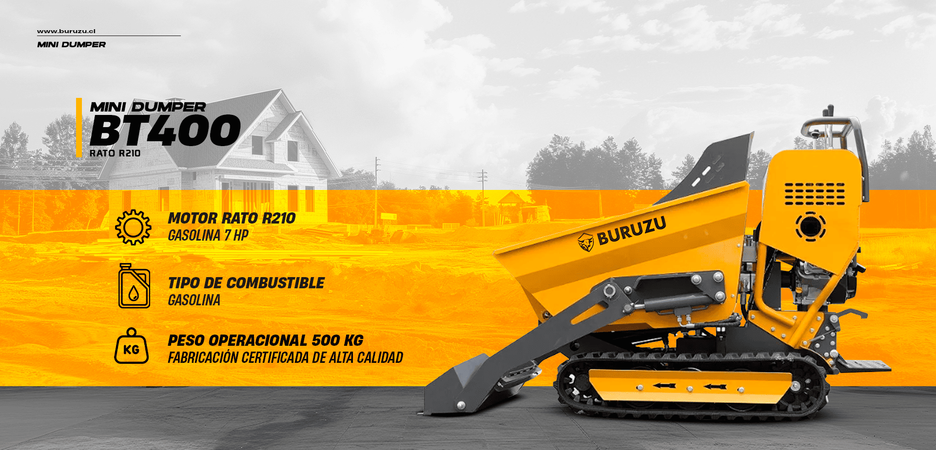 El Mini Dumper BT400 es una solución compacta, potente y altamente eficiente para el transporte de materiales en obras, jardines, faenas agrícolas y espacios reducidos, donde la movilidad y la capacidad de carga son clave. Gracias a su diseño con orugas, ofrece una excelente tracción y estabilidad incluso en terrenos irregulares, pendientes o superficies blandas, permitiendo trabajar con seguridad y control.