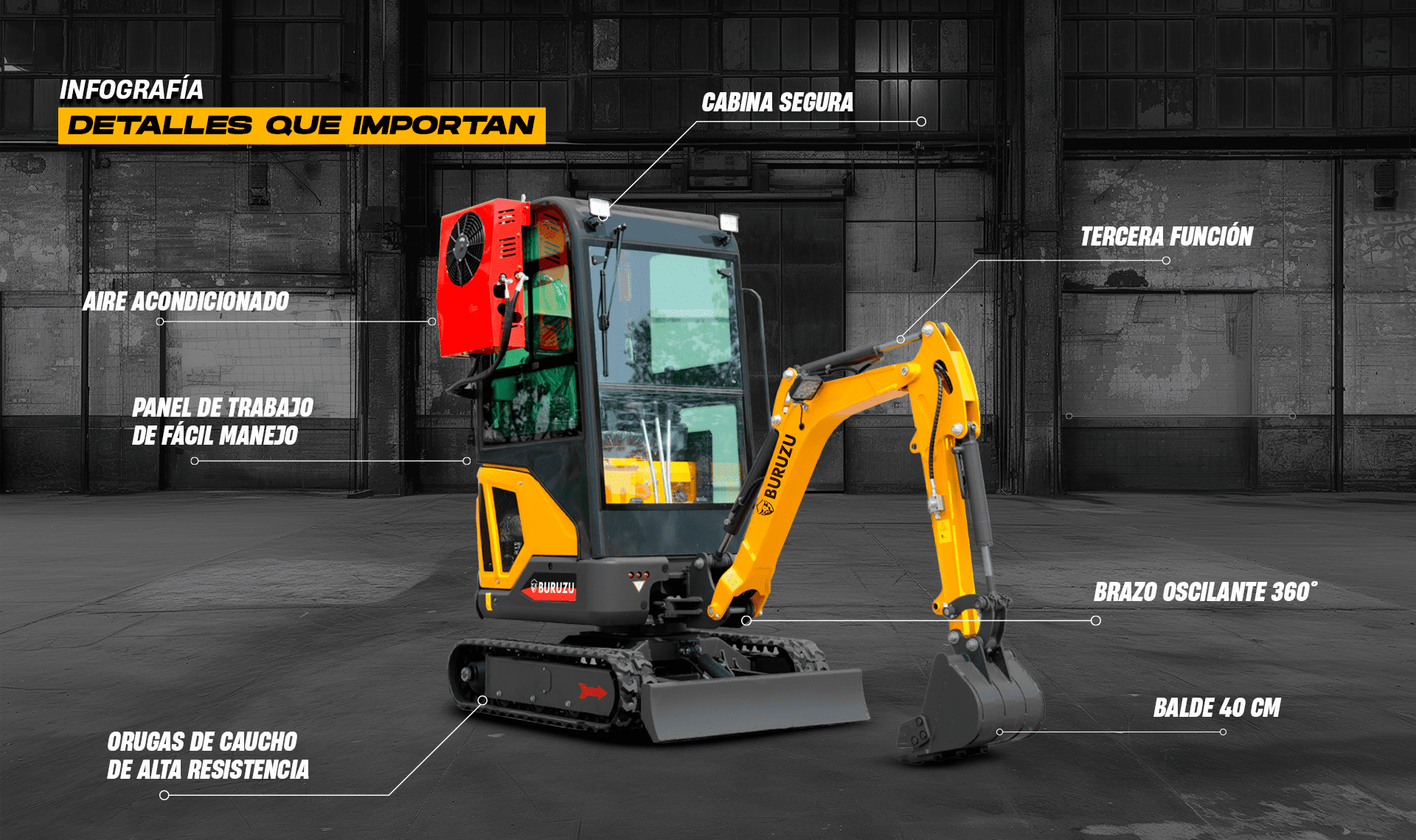 Toda Mini Excavadora Buruzu cuenta además con 1 año de garantía de fábrica, que cubre la entrega de cualquier tipo de repuesto dentro de este plazo, sin mano de obra, previa revisión.