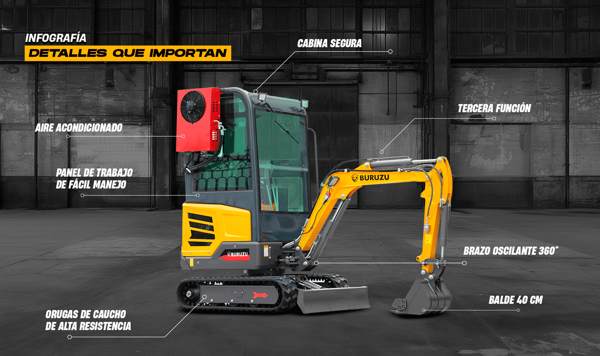 Nuestras mini excavadoras son la elección perfecta para trabajos urbanos, tareas pequeñas o medianas, y terrenos a los que las maquinarias más grandes no pueden acceder. Gracias a su tamaño compacto y su bajo peso, operan sin dañar el entorno, lo que las convierte en la maquinaria ideal tanto para particulares como para empresas.