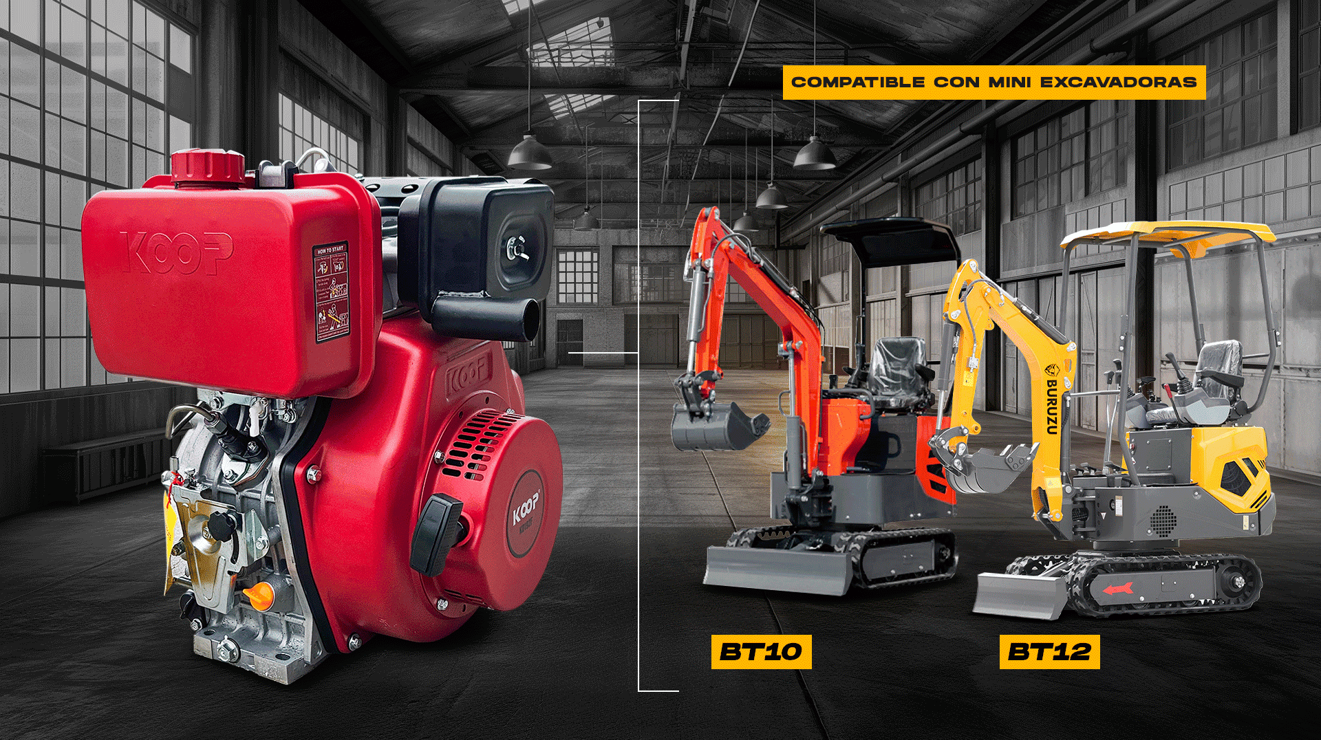El motor KOOP KD192F ha sido diseñado para ofrecer una solución potente, eficiente y confiable en nuestras Mini Excavadoras. Fabricado con altos estándares de calidad, este motor diésel monocilíndrico de 4 tiempos y enfriado por aire combina un rendimiento excepcional con una estructura compacta y resistente, ideal para quienes buscan máxima durabilidad con el menor mantenimiento posible.