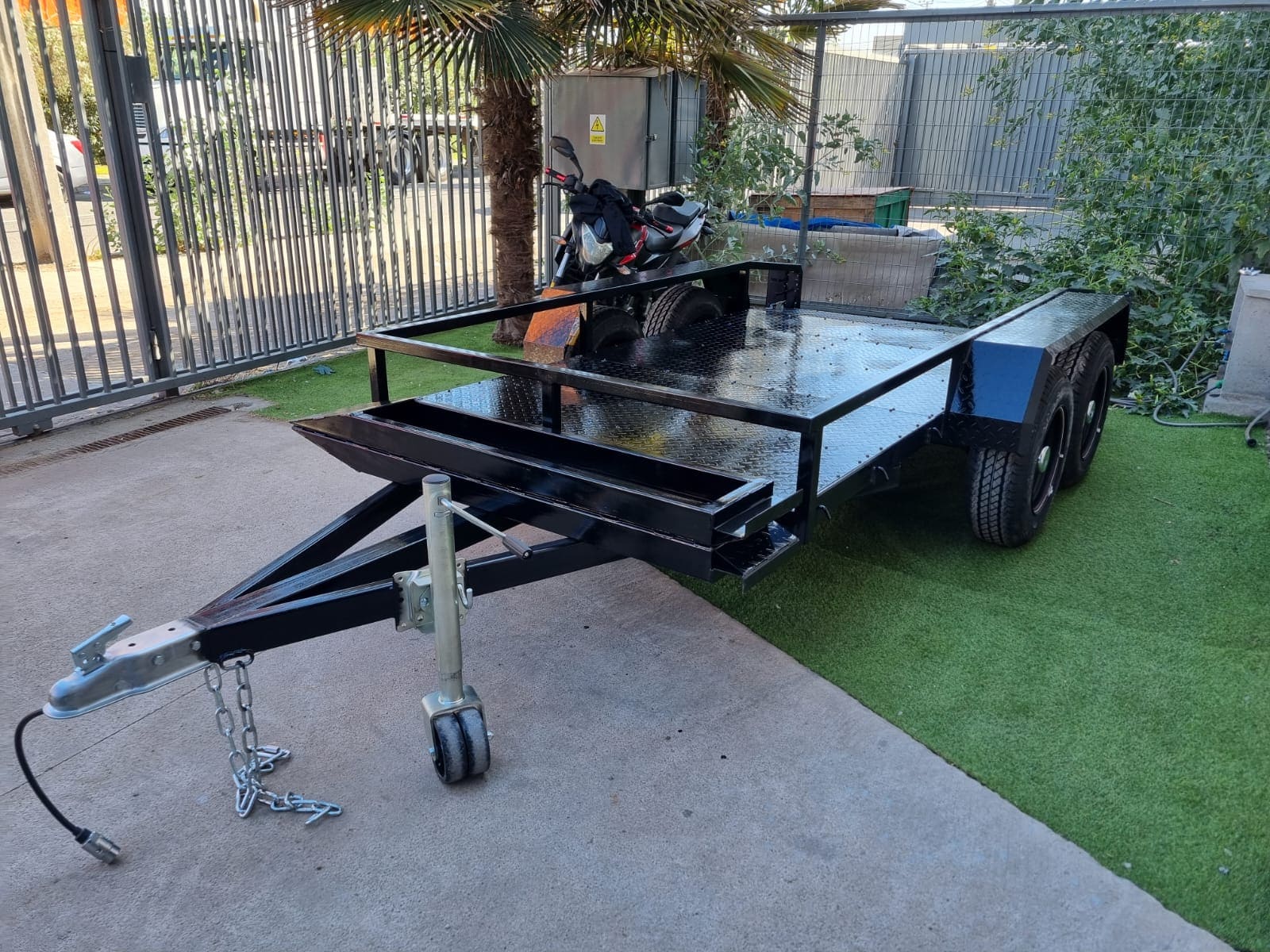 El remolque incluye un acople de 2 pulgadas y conector eléctrico de 7 pines norma DIN 1724, cumpliendo con los estándares internacionales de compatibilidad. Con un peso en vacío aproximado de 400 kg, se recomienda considerar este valor al calcular la carga total combinada (vehículo + remolque + carga) para mantener un rendimiento óptimo y seguro.