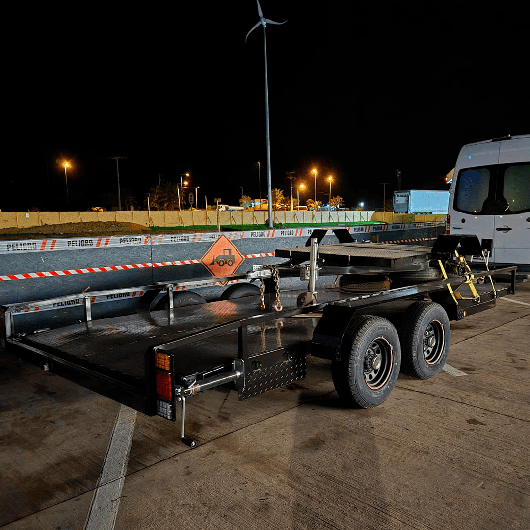 El Remolque TP-3000SF está diseñado para el transporte confiable de cargas medianas y pesadas de hasta 3.000 kg, ofreciendo un equilibrio óptimo entre capacidad, resistencia y seguridad. Con una superficie útil de 5 × 2 metros, proporciona un amplio espacio de carga ideal para maquinaria, materiales de construcción o equipos de trabajo de gran tamaño.