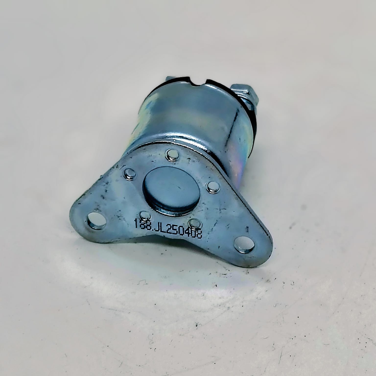 Interruptor de solenoide de alta resistencia, ideal para sistemas de arranque automotriz y equipos industriales. Fabricado en acero galvanizado, cuenta con doble terminal de conexión y soporte de montaje para una instalación segura y duradera.